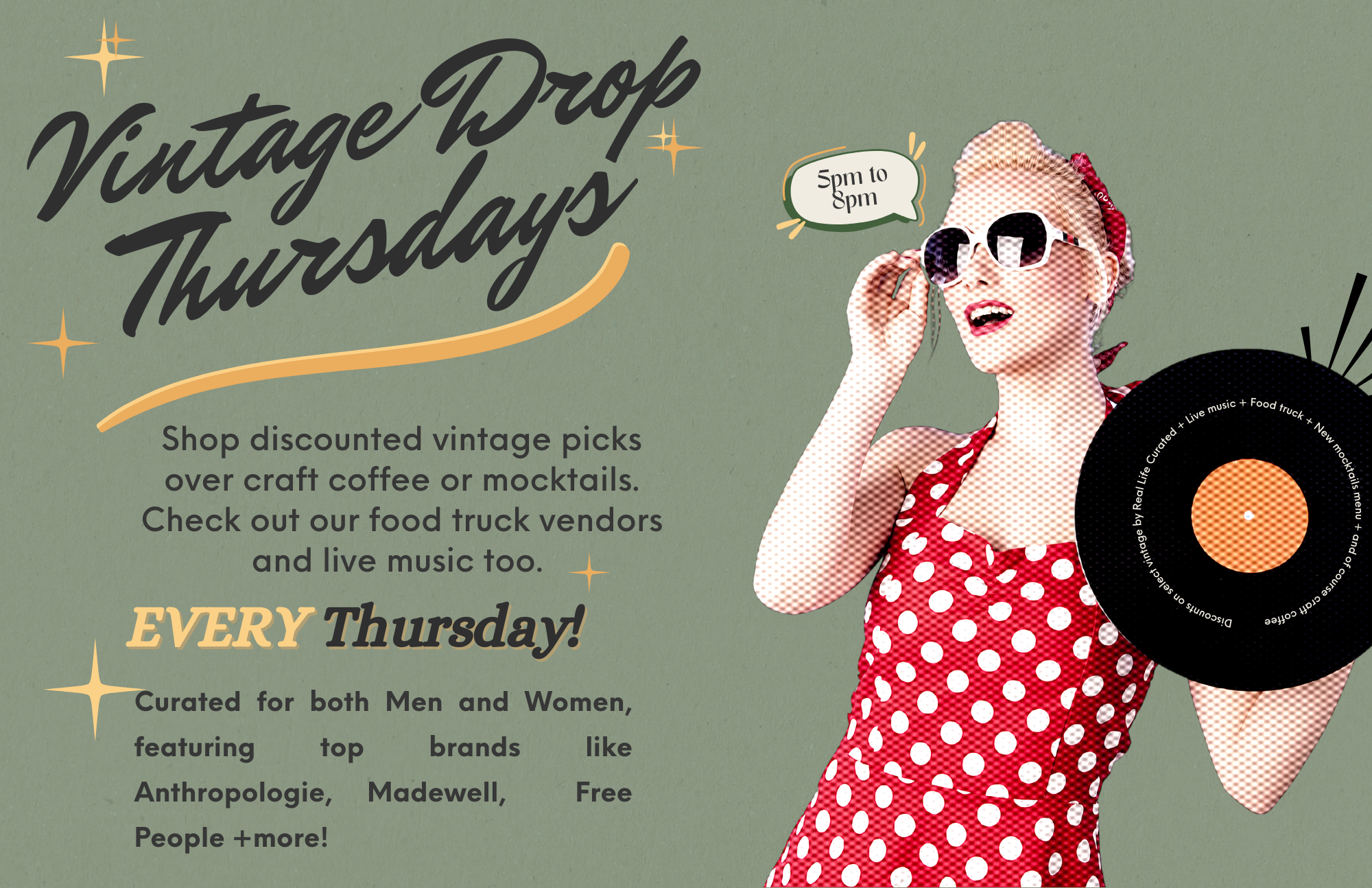 Join us for Vintage Drop Thursday on September 19th at Moonflower Coffee Collective! We're excited to stay open until 8 PM for an evening filled with vintage shopping, great food, and live music.